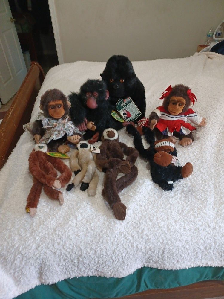 MONKEY COLLECTION. ALL DIFFERENT. SOME MAKE SOUNDS. SOME POSE. ALL BRAND NEW. TAGS STILL ON. QUALITY MADE. ADDED A BIG MONKEY!! CHECK LAST PICTURE!!