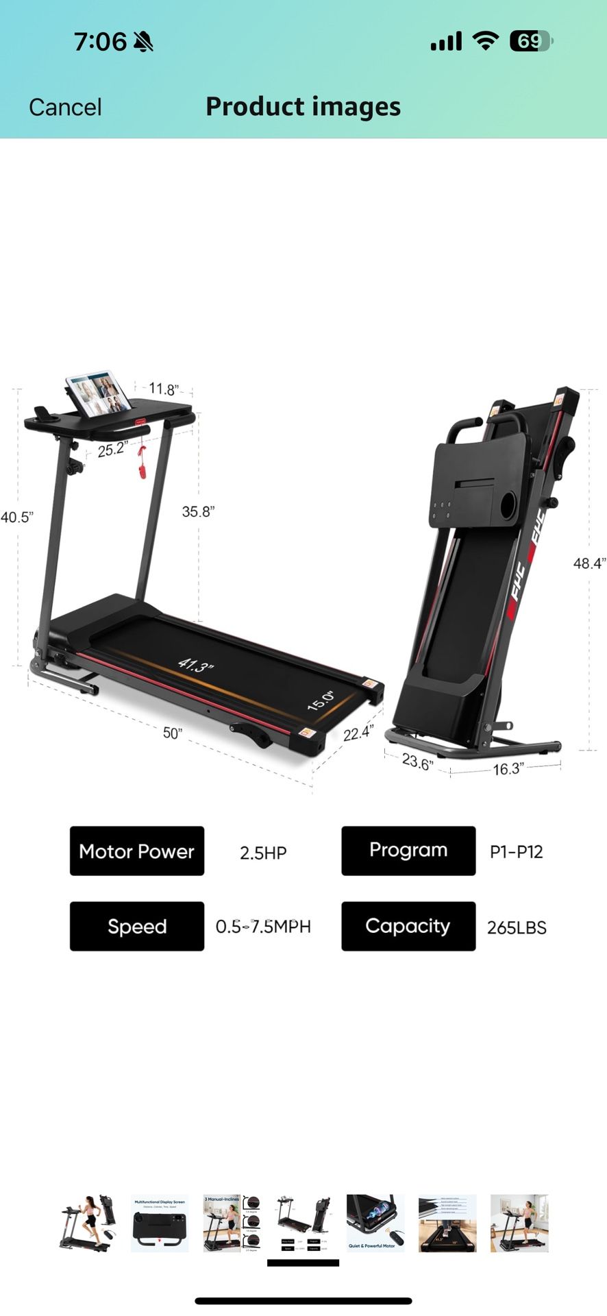 Never used, brand new Foldable Treadmill with Incline, 2.5 HP Portable Treadmill with Desk Workstation, Walking Running Treadmills with 12 Preset Programs, desk, LED display, fully folds up for easy storage Run and walk Bavily