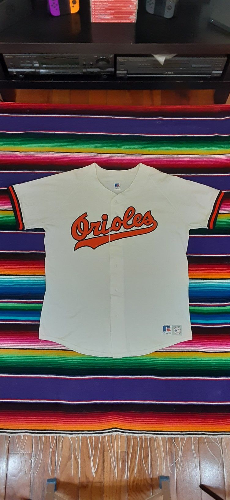 Vintage Baltimore Orioles baseball jersey. Rare pink logo patch original from the 90's. Size XL men's. Materials 50% polyester 50% cotton. Pre-owned used in excellent condition. Se habla español.