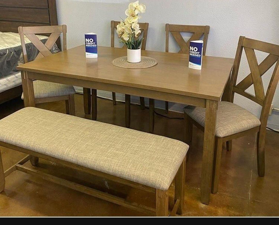 Clara - Dining Table Set(6 Pc. Table, 4 Chairs, Bench) By Crown Mark📌In Stock🚨Finance&Delivery Available
