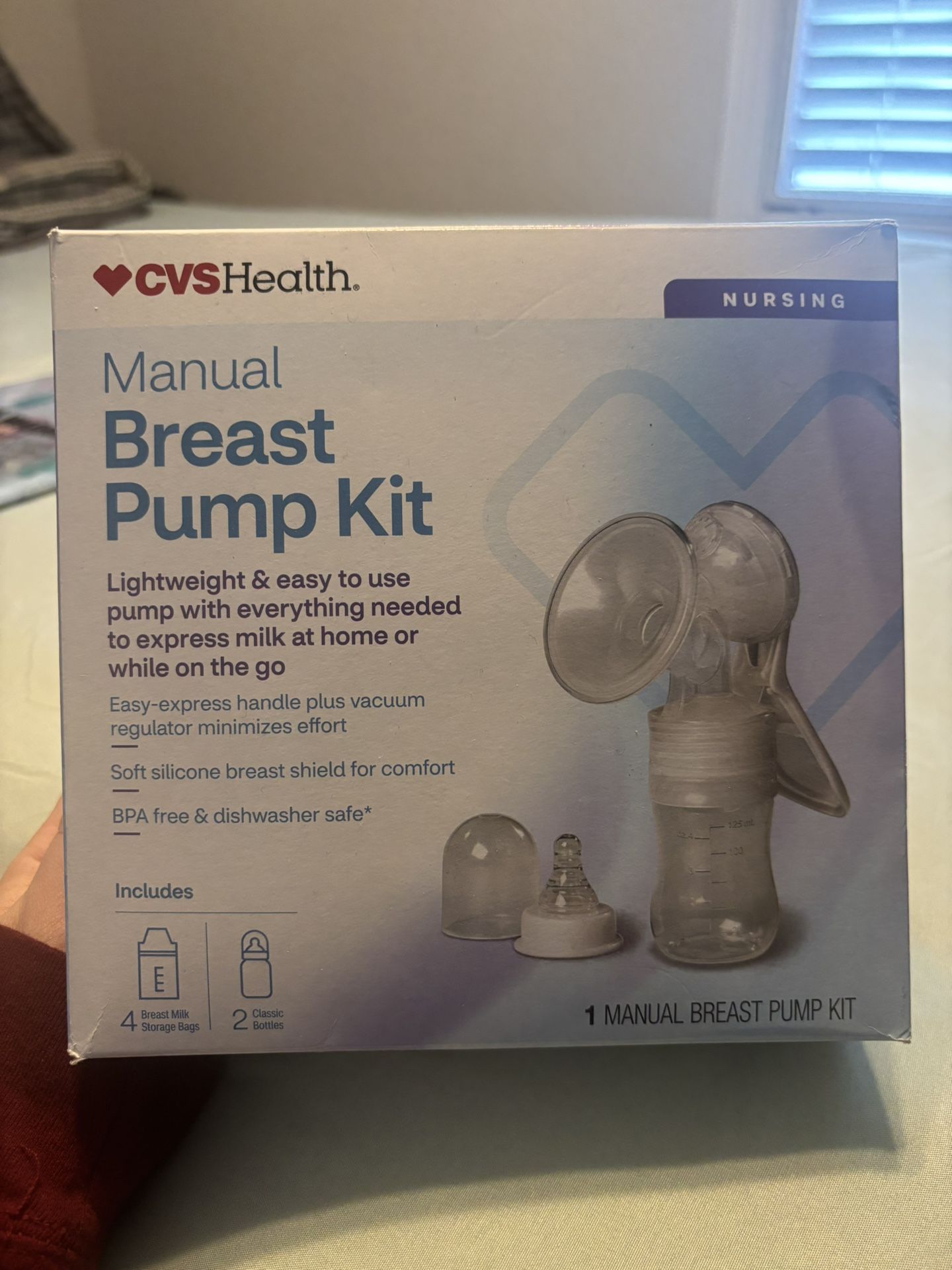Manual breast pump kit. Used once while for an overnight hospital stay, was away from my baby so I used this to pump that one night.