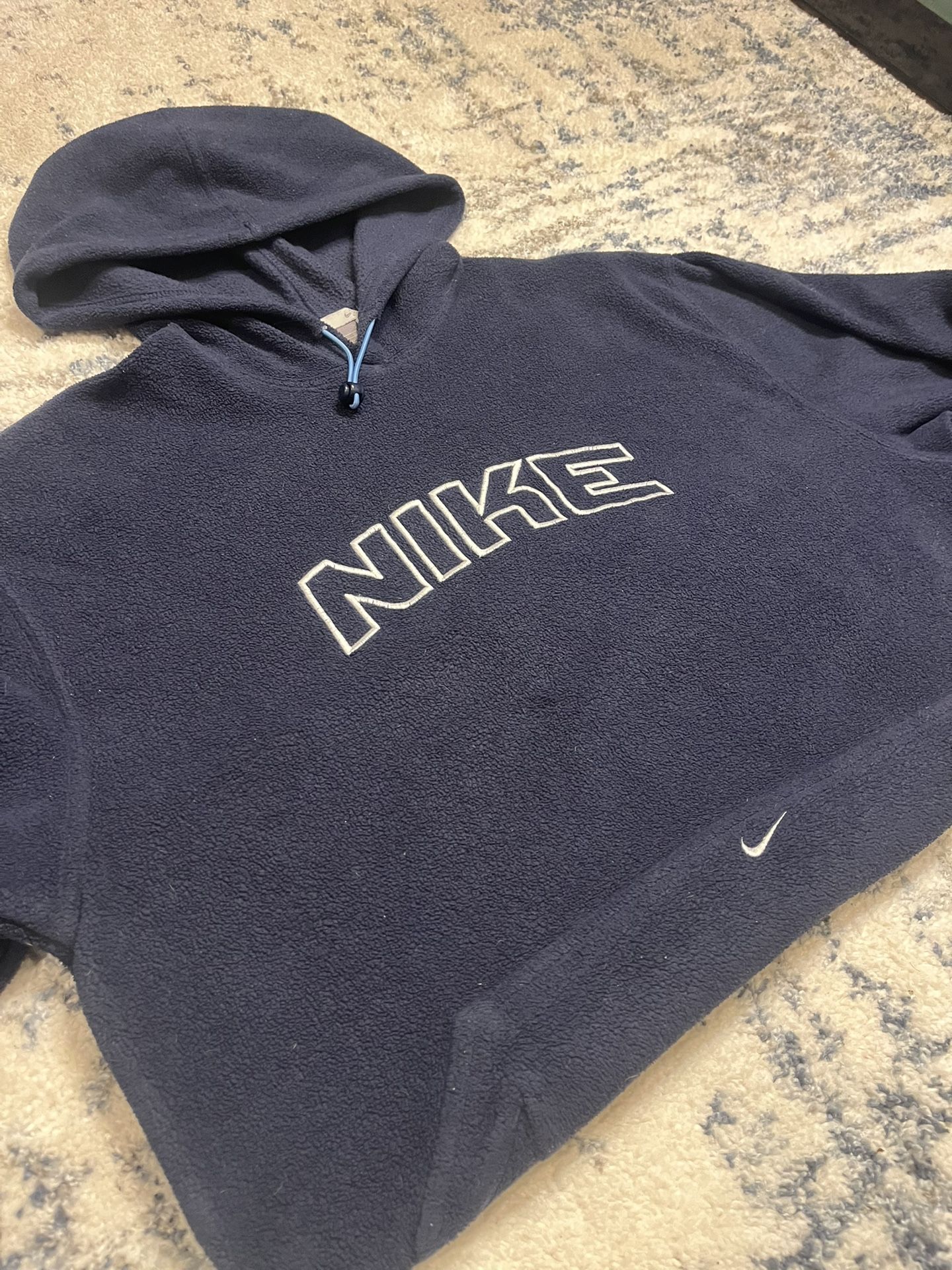 Vintage Y2K Nike Soft Center Swoosh Block Letter Navy Blue Hoodie Size Large