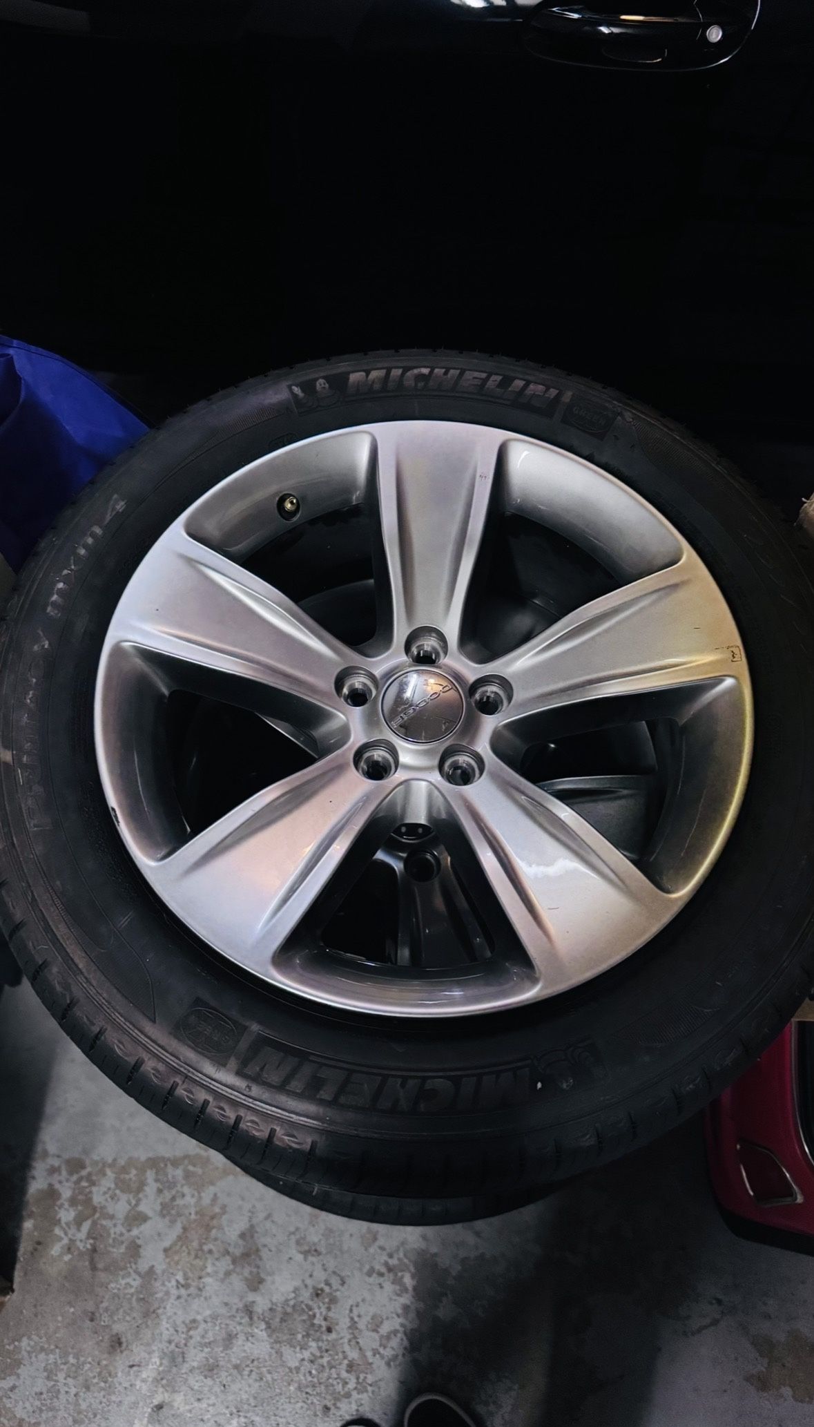 4 like new 18" alloy rims for 15-22 Dodge Challenger Rim Covers with new Michelin tires.