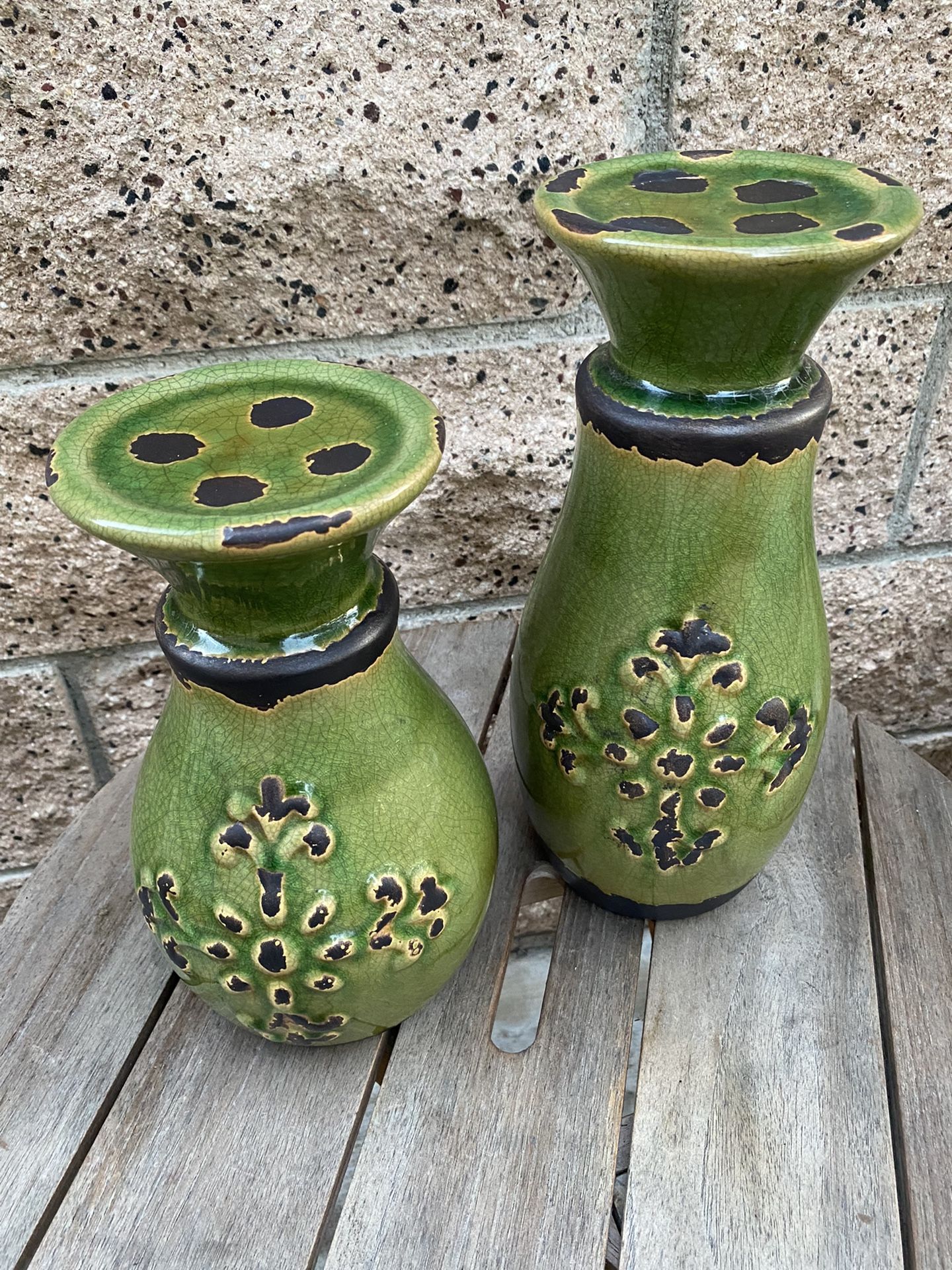Ceramic Crackled Glaze Candleholder Pair