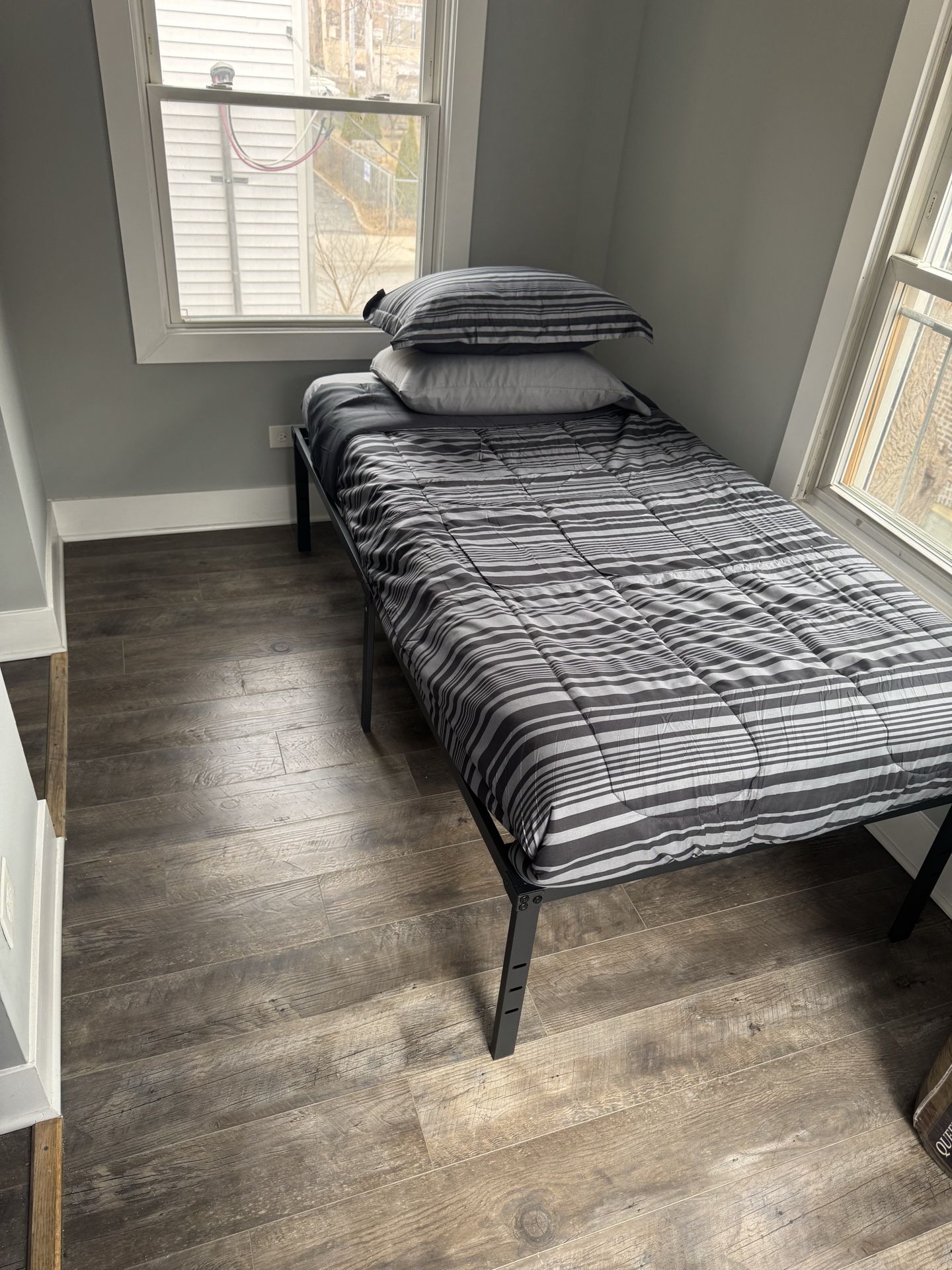 Never used Selling as a set. Mattress and Frame. No box spring needed. 8in mattress. 18in frame height.