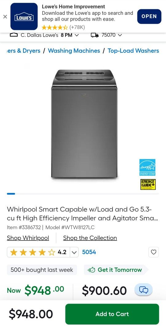 Less than a month old 5.3 Cu.ft whirlpool washing machine, 7.0 Cu.ft electric dryer, super clean, ready for new home, we can deliver.