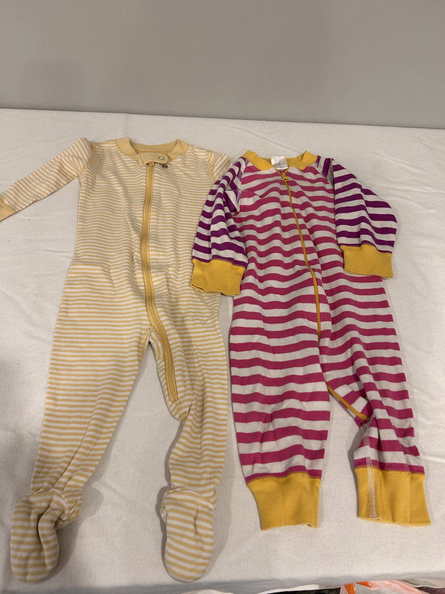 2 Hanna andersson onesie bundle. Both are striped and 100% cotton. Size 6-12 month. Both are zipper closure. Yellow pair is footed and in great condition. Pink, yellow and purple striped do have light staining in spots and are footless. (See pictures) Local pickup in north Portland or I also offer shipping. Happy to bundle if interested in other items I’m selling or reach out if looking for anything else, I may have it!
