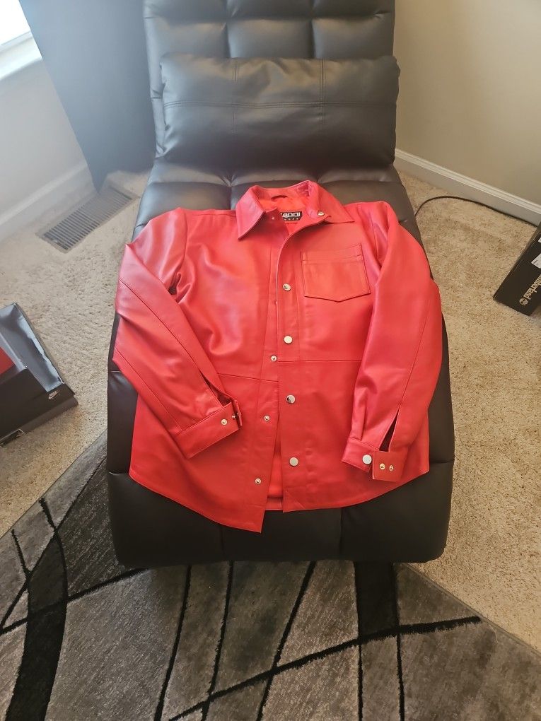 Red Leather Shirt Giovanni Leather. High quality. Size L
