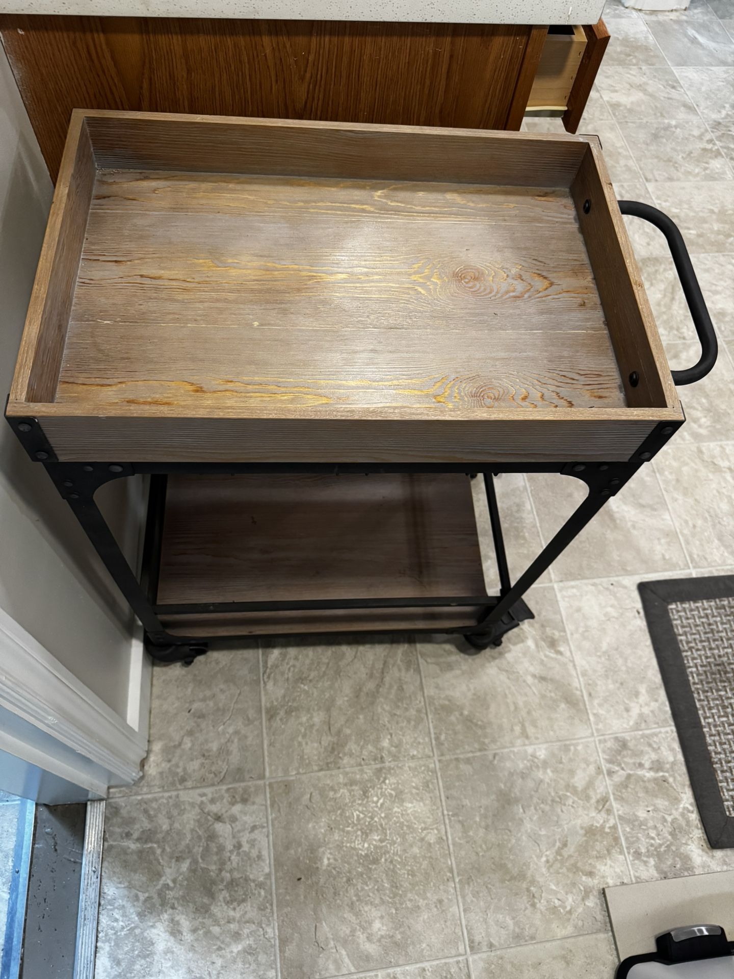 If this listing is up, it’s still available. KTMBDW metal and wood rolling bar cart originally purchased from Target. It’s a great cart that has served me well the last couple years, but it doesn’t quite fit well in my new kitchen. Still in good condition. Ample storage including nifty storage below the top shelf for coupe glasses. I can meet around Columbia City. Cash or Venmo.