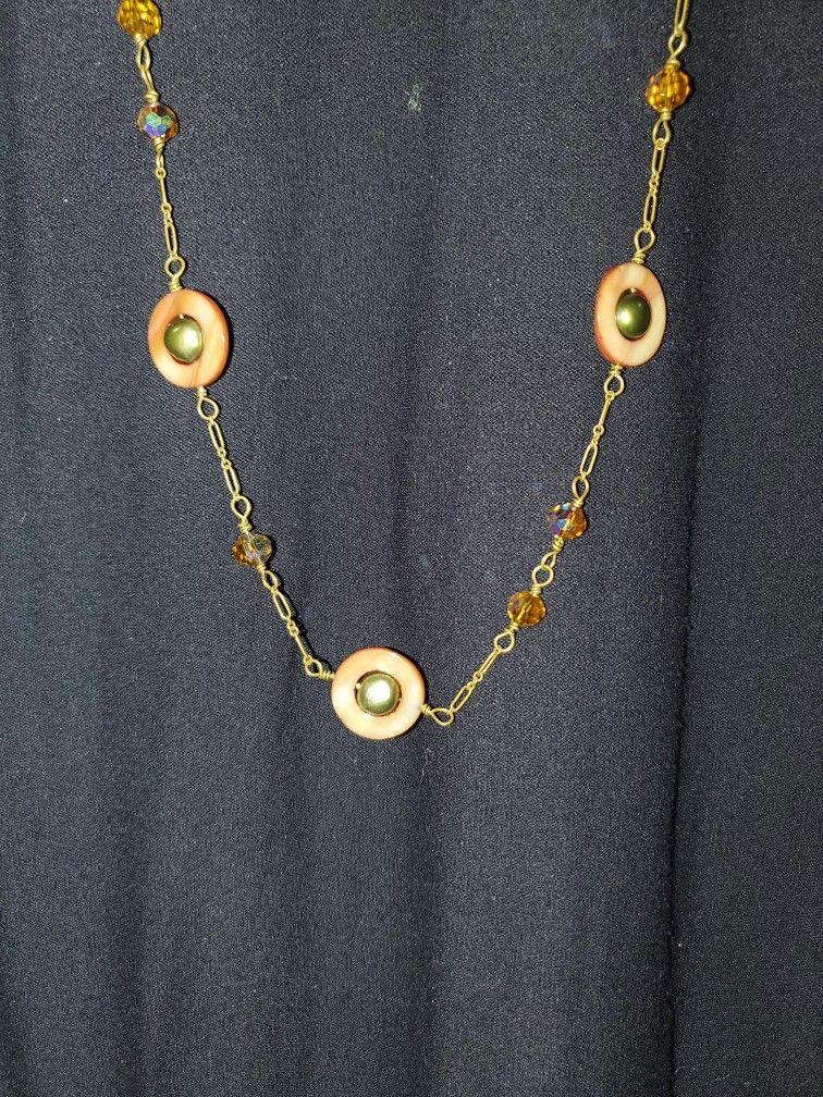 Handmade Long Chain Pearl And Shell Necklace