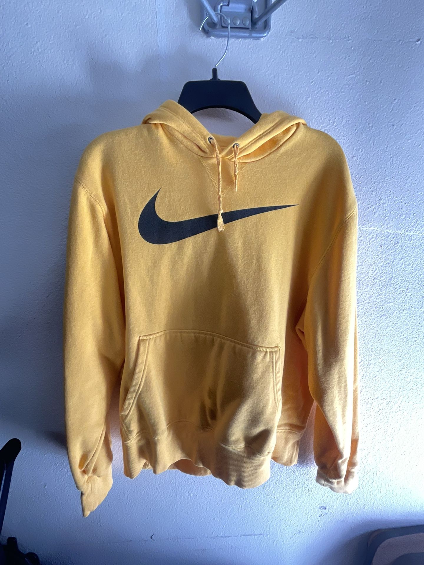 Men's Nike Pullover Hoodie Color: Yellow Size: Medium Price: $10 A closet staple, the Nike Pullover Hoodie has a classic style and everyday look that you really can wear every day. PRODUCT FEATURES Hood with a drawstring offers adjustable coverage 1 exterior pouch pocket Long sleeves FABRIC & CARE Machine wash Imported