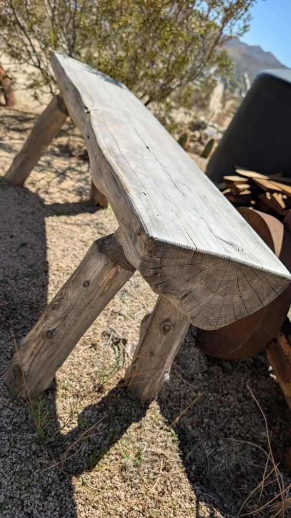 Rustic bench in functional condition. Supports weight and has a great aesthetic. There is some evidence of termite/rot. Would look great touched up and restored. $45