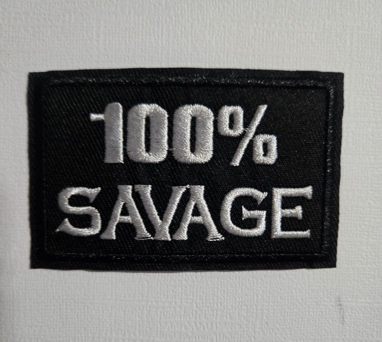 FUNNY 100% SAVAGE BLACK AND WHITE IRON-ON PATCH. FREE SHIPPING!!!!!
