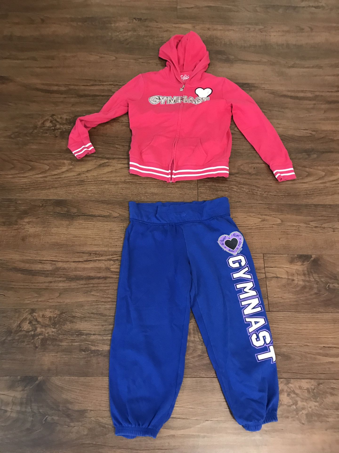 Girls’ Justice gymnast pink hoodie and blue sweat pants, size 14