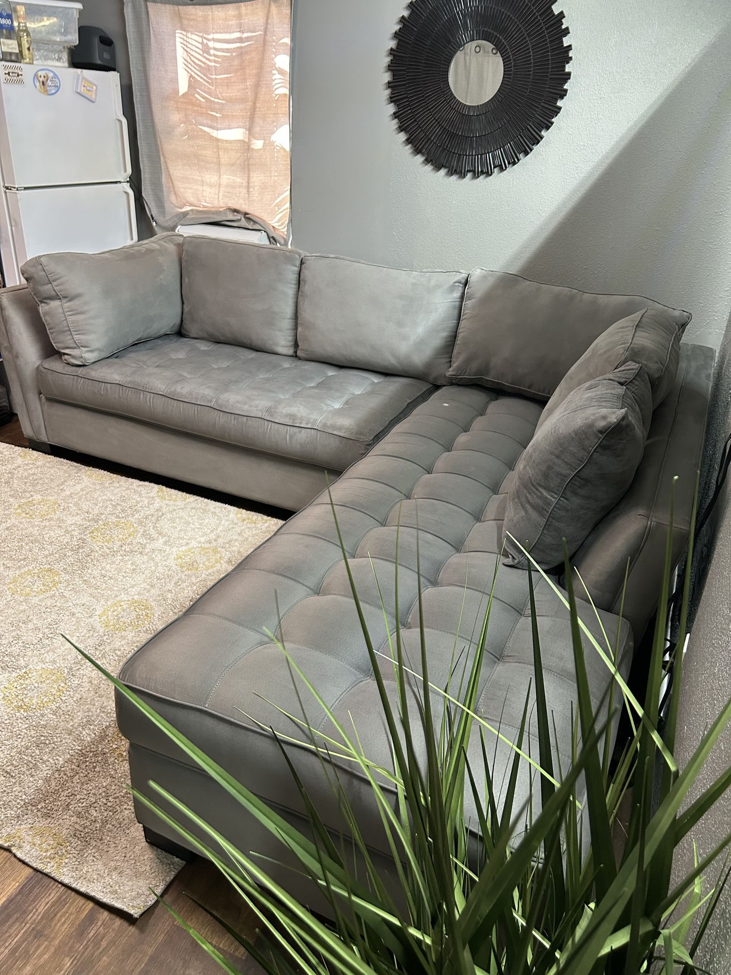 Gray Sectional Couch two pieces Good Condition, comfy,clean No rips or Damages Pet and Smoke Free 110”W x 92”D x 32"H