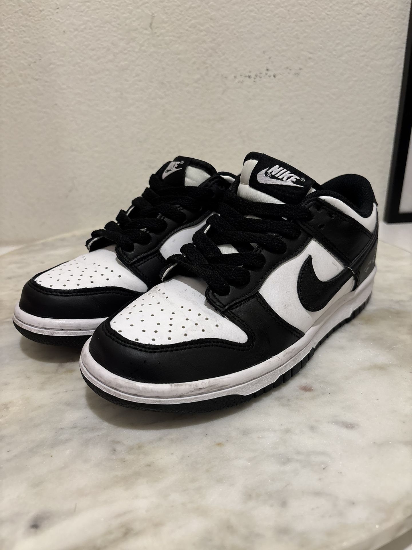 Nike Dunk Low “Panda” – Size 4Y (Youth) Clean and classic black/white Panda Dunks. Easy everyday pair that goes with everything. Details: • Size 4Y (youth) – fits about women’s 5.5–6 • 100% authentic Nike • Black & white “Panda” colorway • Pre-owned in good condition • Normal wear: light creasing and minor scuffs from use • Soles still have solid life left (see photos) • No box Message if interested!