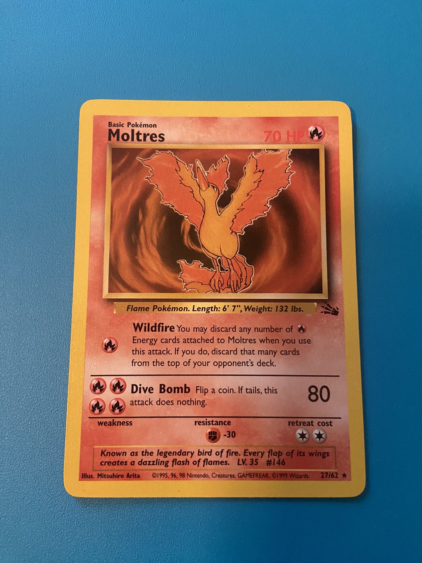 Moltres 27/62 Non-Holo Pokemon Card Fossil Set Unlimited Rare WoTC 1999