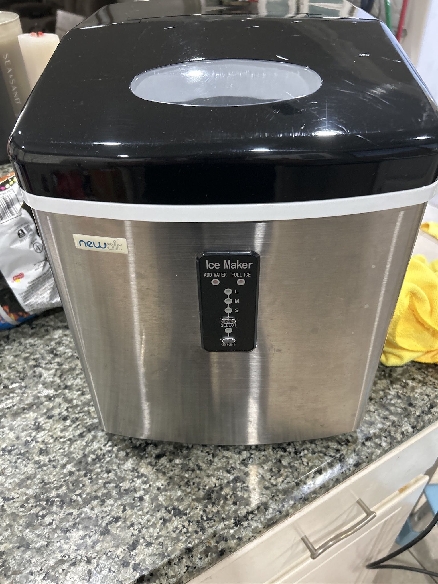 Works perfectly — makes up to 28 lbs of ice per day. Only minor cosmetic scratches on top (see photo). Cleaned and tested. Great for parties, drinks, or daily use. Selling due to moving homes. Only used it a few times during my wife’s pregnancy. • Stainless steel finish • 3 ice size settings (S/M/L) • Easy to use – just plug in and fill with water • Comes from smoke-free, pet-friendly home ***Pick up in Chula Vista, No holds***