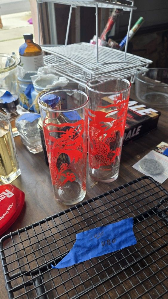 Fireball glasses $1 for the set Budweiser mug/glass $1 each