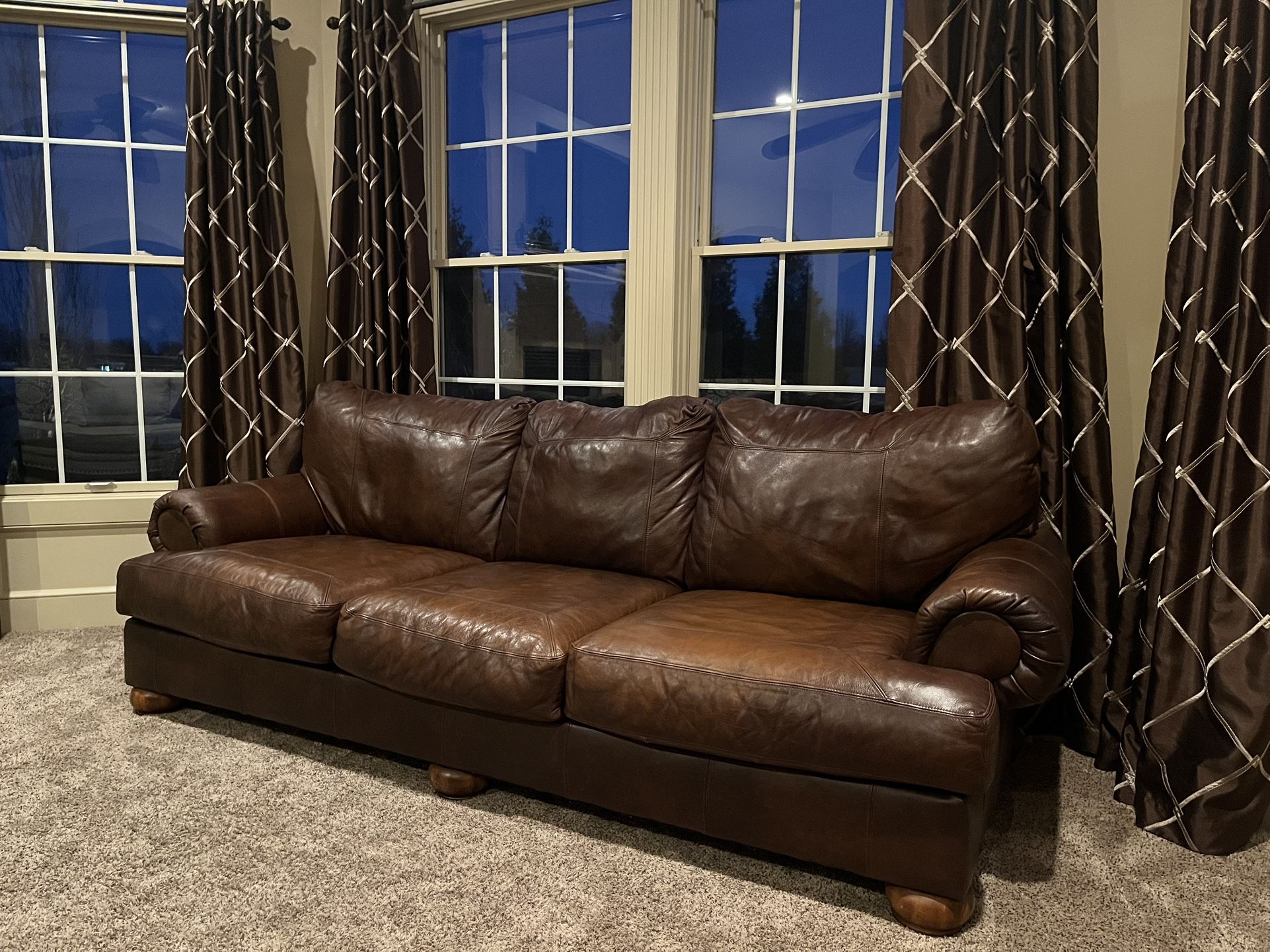 Genuine leather sofa in excellent condition. Smoke-free and pet-free home. No stains, rips, or tears. Very large - 100” width. Cash only and you must pick up. No delivery available.