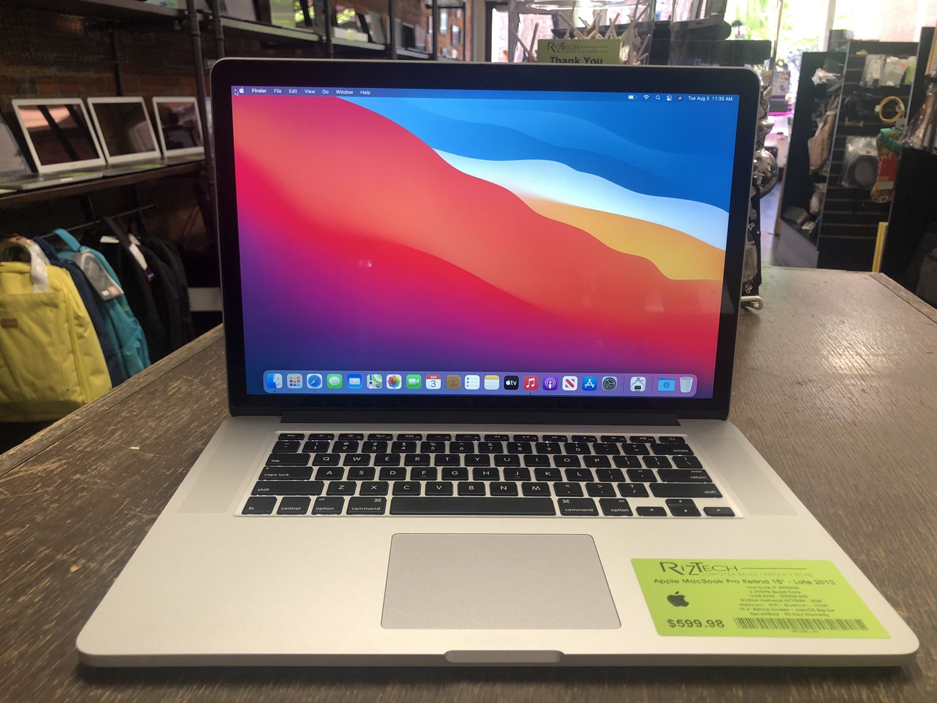 15” MacBook Pro with 2GB Dedicated graphics and on Big Sur operating system. Available at RizTech located at 215 S. Court Street Medina Ohio Apple MacBook Pro 2013 Intel Core i7-4850HQ 2.30GHz Quad Core 16GB RAM 500GB SSD 2GB NVIDIA GeForce GT750M Webcam WiFi Bluetooth HDMI 15.4” Retina Screen macOS Big Sur Includes Apple Power Cord Free sleeve with purchase Recertified with 90 Day Warranty $599.98
