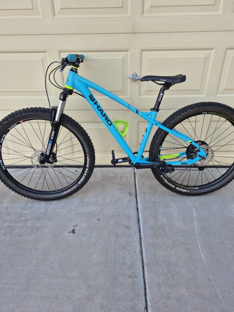 • Small Frame • 27.5 Tires New (Setup Tubeless) • 10 Speed (1x10) Deore Drive Train • SXM30 Front Shock W/Lockout Feature • Shimano Front/Rear Hydraulic Brakes • Shimano Deore Shifter • Shimano Deore Derailleur With Clutch • $520 (CHECK OUT MY OTHER BIKE LISTINGS) Selling this great looking turquoise color with black lettering Haro Double Peak Comp Plus mountain bike. The bike cosmetically and mechanically is in excellent condition, low miles. Comes with new 27.5 tires (setup tubeless with new sealant), Shimano hydraulic front/rear brakes, XCM30 front shock with lockout feature and best of all a 1×10 Deore drivetrain for those of you who like climbing. Would make for an excellent entry level mountain bike for anyone wanting to get into mountain biking or if your just into riding the city bike paths and canal banks. All gears shift smoothly and the hydraulic brakes work great. Bike has been washed, degreased, detailed, lubed and tuned up ready to ride and enjoy. $520