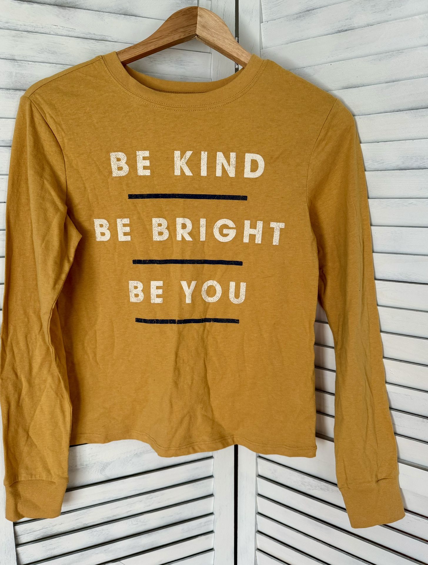 Girls Long Sleeve Top, Gold. Size XS. Measurements: Chest 34”, Length 22”. Cotton/Polyester. NWOT. #girlstop #girlsshirt #zoeandliv #kidsclothes