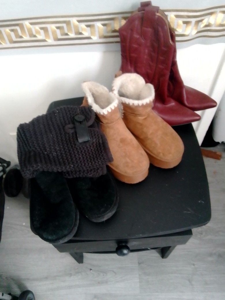 Black UGGs size 7 Brown low boots size 7.5 Burgundy boots size 7.5