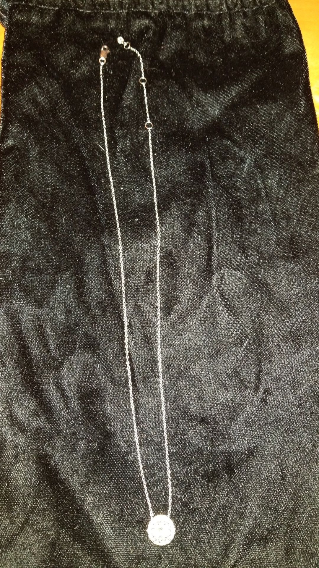 You must see this necklace to appreciate the beauty along with the detail throughout with two sizing holes within chain. Paid $140.00 at Neiman Marcus, asking $70.00.