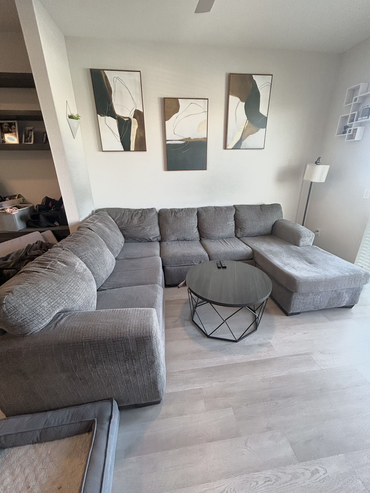 Selling my sectional couch!! Please see Dimension below. • Overall length: 138in • Short side: 95 in • Chaise depth: 70 in • Height: 34 in • Seat depth: 37 in