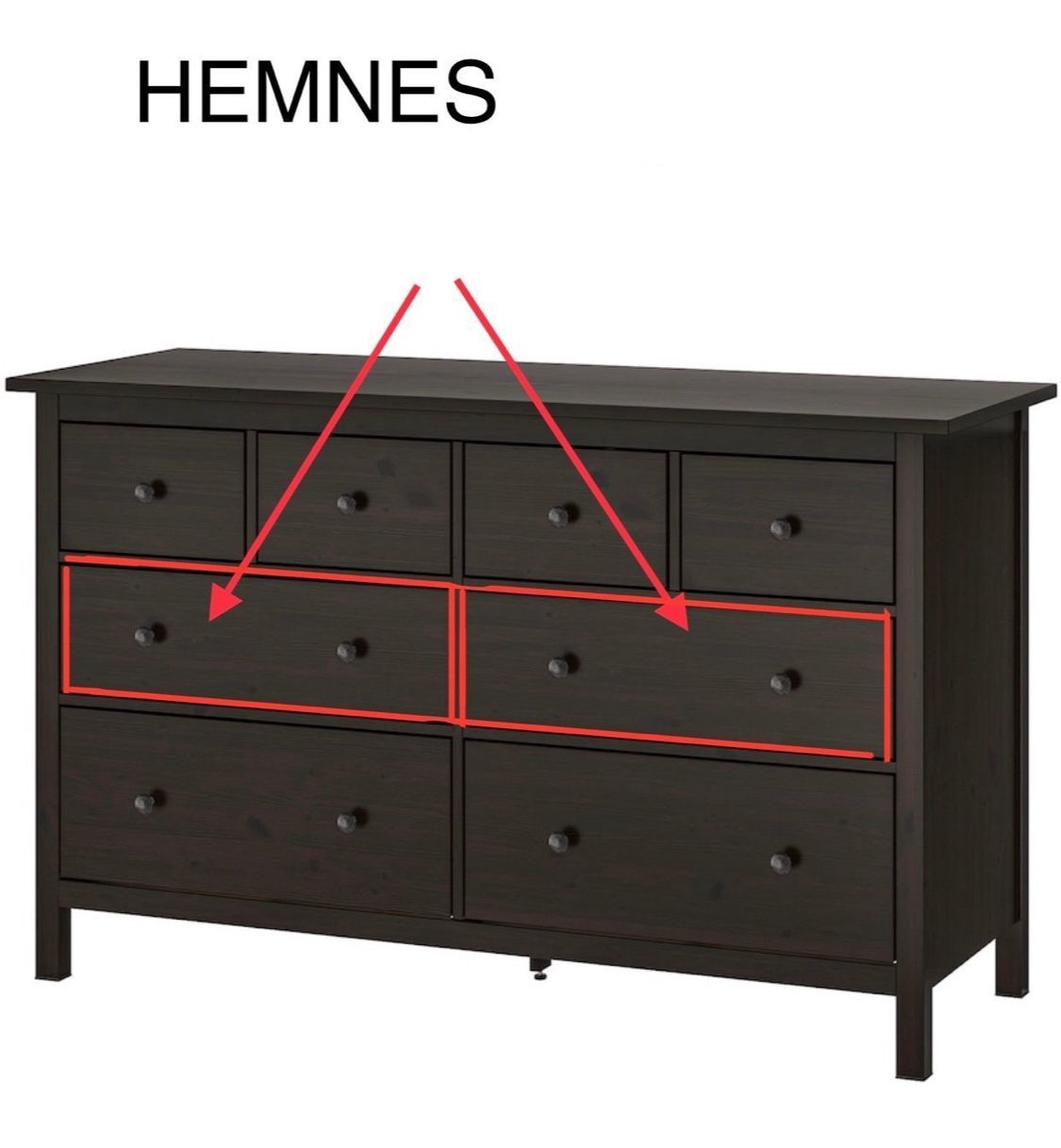 (1)x IKEA Middle Row Drawer Replacement for HEMNES Black-Brown 8 Drawer Dresser