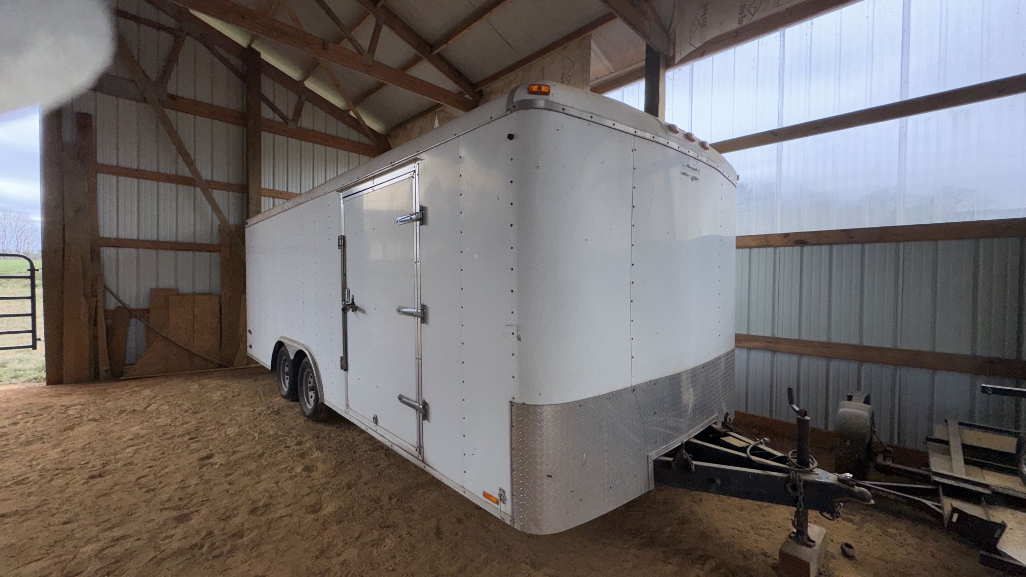 2010 Forest River-Continental Cargo-Auto Plus Trailer. Includes 2-5/16” weight distribution receiver hitch and bars. Torsion axles, 7K weight capacity all in good working condition, stored in covered barn. Tires installed 2022, approx. 5k miles. All lights, wiring, brakes work. Inside includes 2 rooftop vents, 3 switched rooftop lights, 1 spare tire and 4 rows of E-Track strips front to rear.