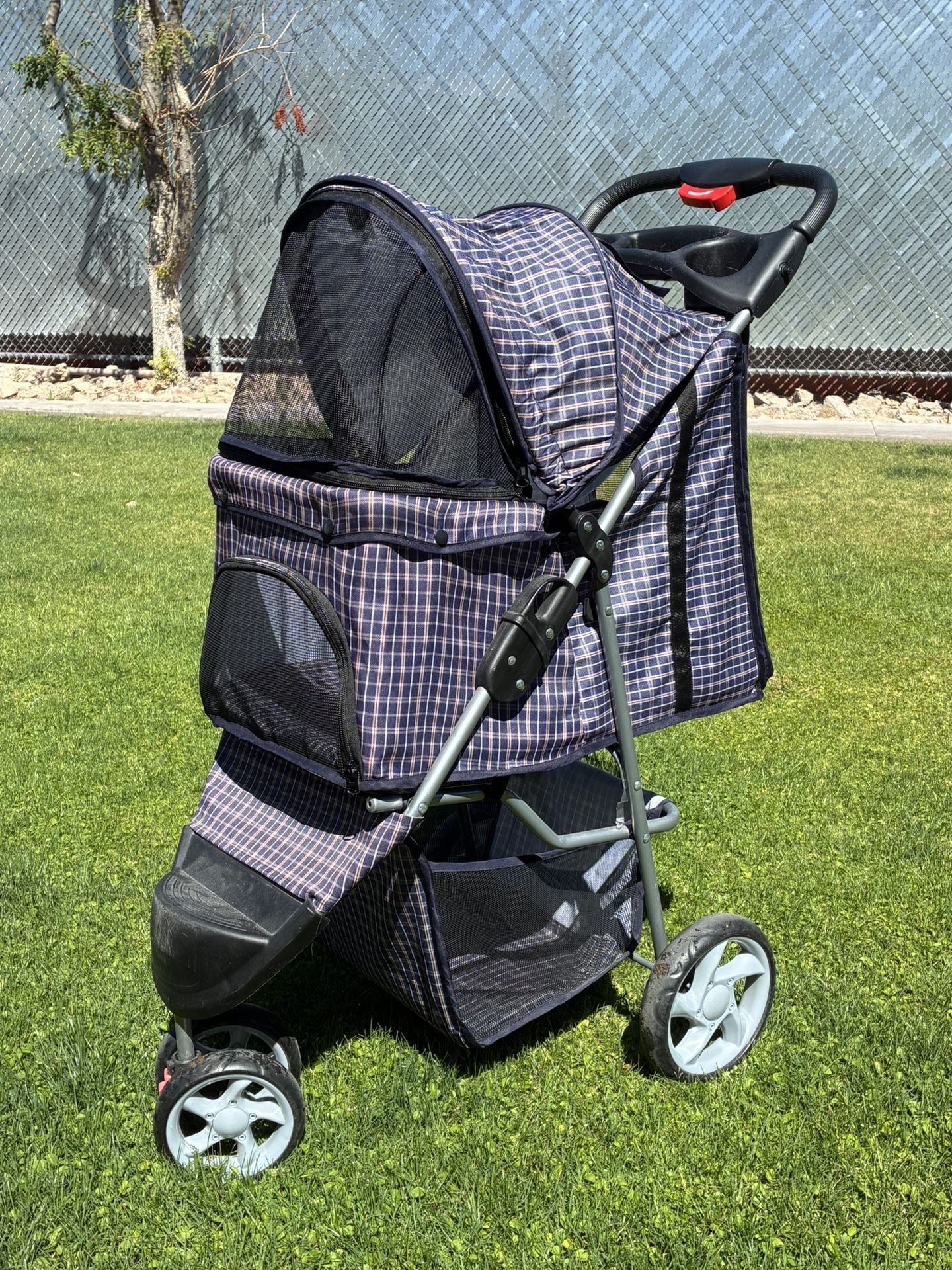 **pending pickup** Excellent condition pet stroller with fully zipper-enclosed options. Storage basket below, cup holder on handle and easy release folding. Pet carriage area is 22” long, 13” wide and 18”high. This was perfect for our elderly dog who still wanted to adventure!