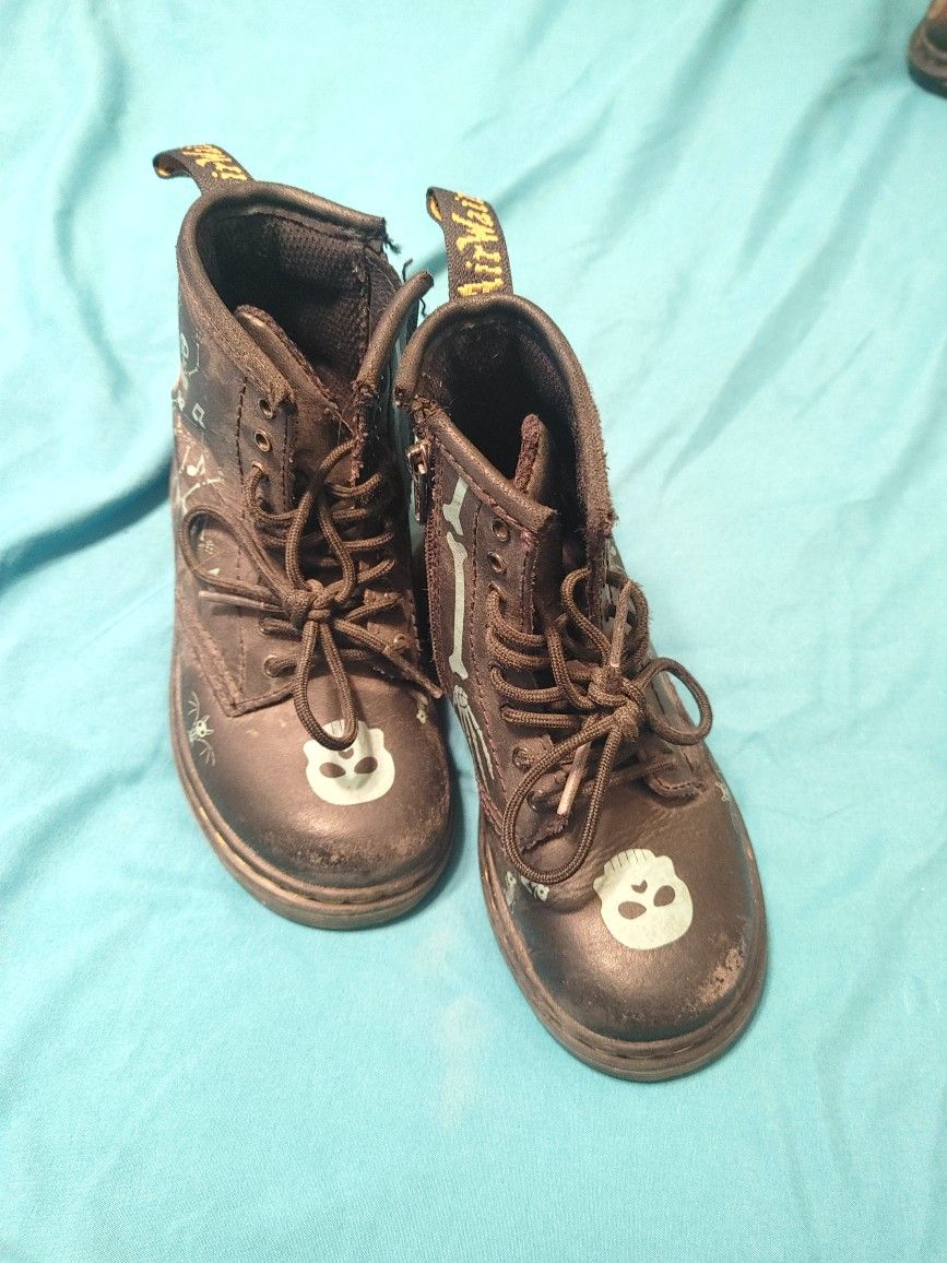 Kids size 9. Black boot with glow in the dark skeletons design., sole is glow in the dark as well. Sides zip to make on/off easy.
