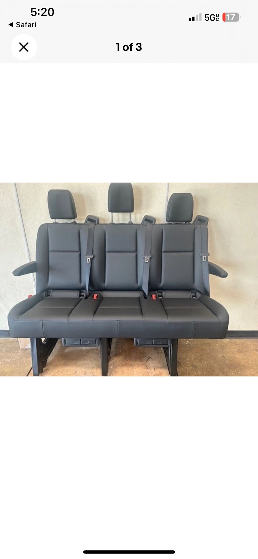 Description: Removed from a brand-new 2024 Mercedes-Benz Sprinter. This is an OEM 3-person leather bench seat in perfect condition, taken out immediately after purchase. • Premium black leather upholstery • Seats 3 passengers with comfort • Reclining seatbacks for added adjustability • Built-in cup holders in the center seat • Integrated headrests & factory seat belts • Direct bolt-in for 2019 and newer Sprinter vans • May fit some earlier models with correct floor brackets This is a high-quality, factory Mercedes seat — ideal for upgrading your Sprinter interior or replacing a worn bench. 📍 Local pickup only.
