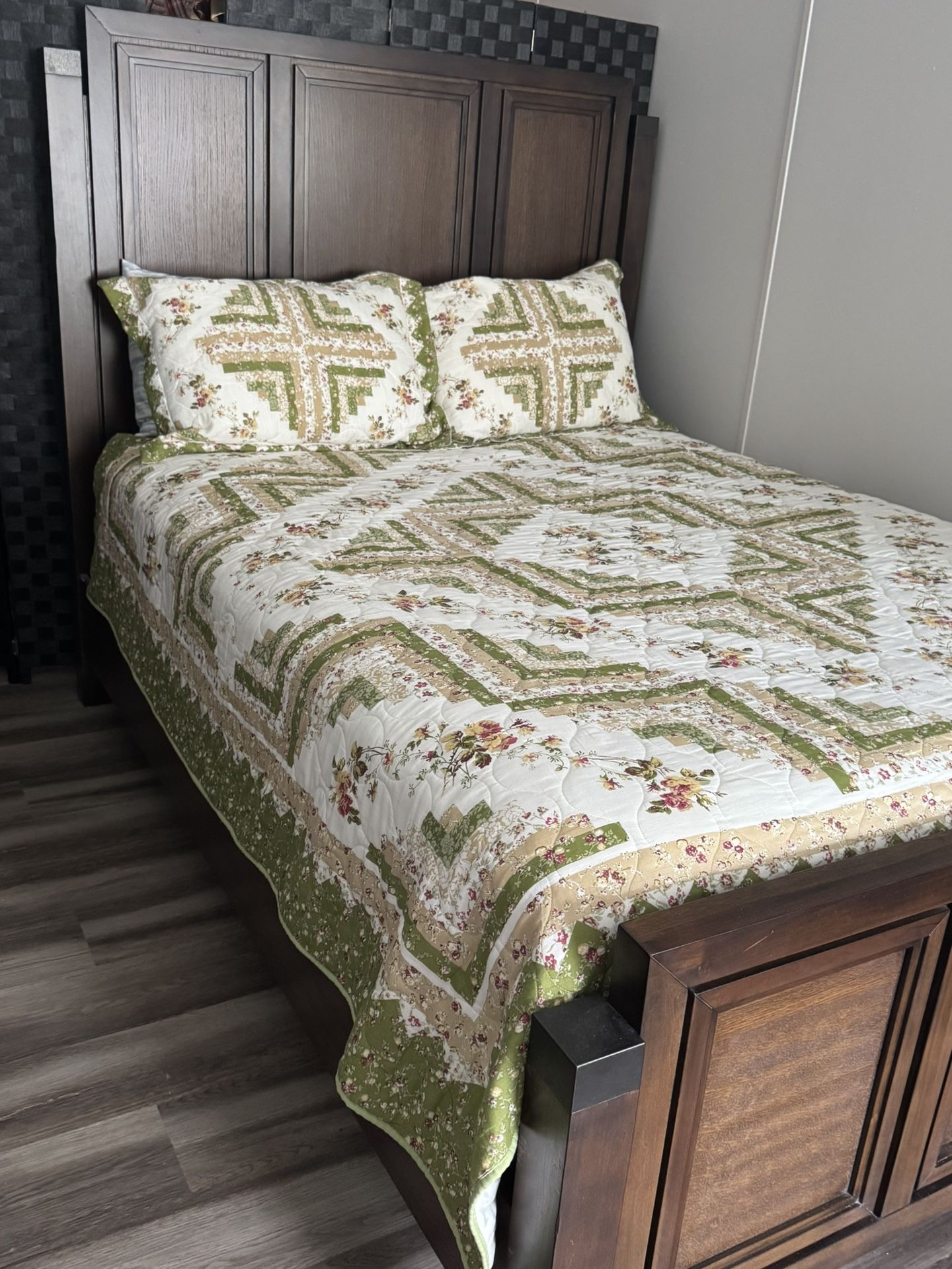 Queen bedroom set. Includes 2 dressers and 1 nightstand. Mattress and boxspring included. In excellent condition.