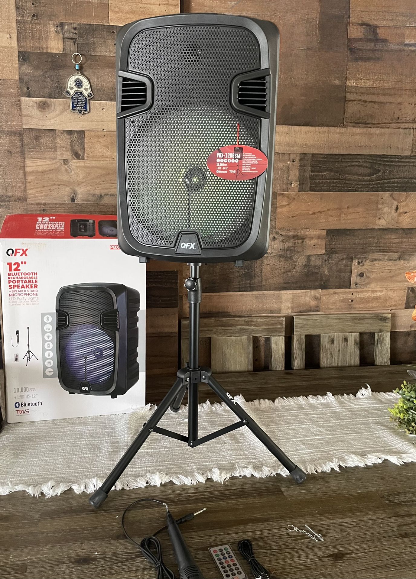 QFX 12β Bluetooth Portable Rechargeable Speaker With Microphone, Speaker Stand & LED Party Lights ππ€πΆπΆπΆ