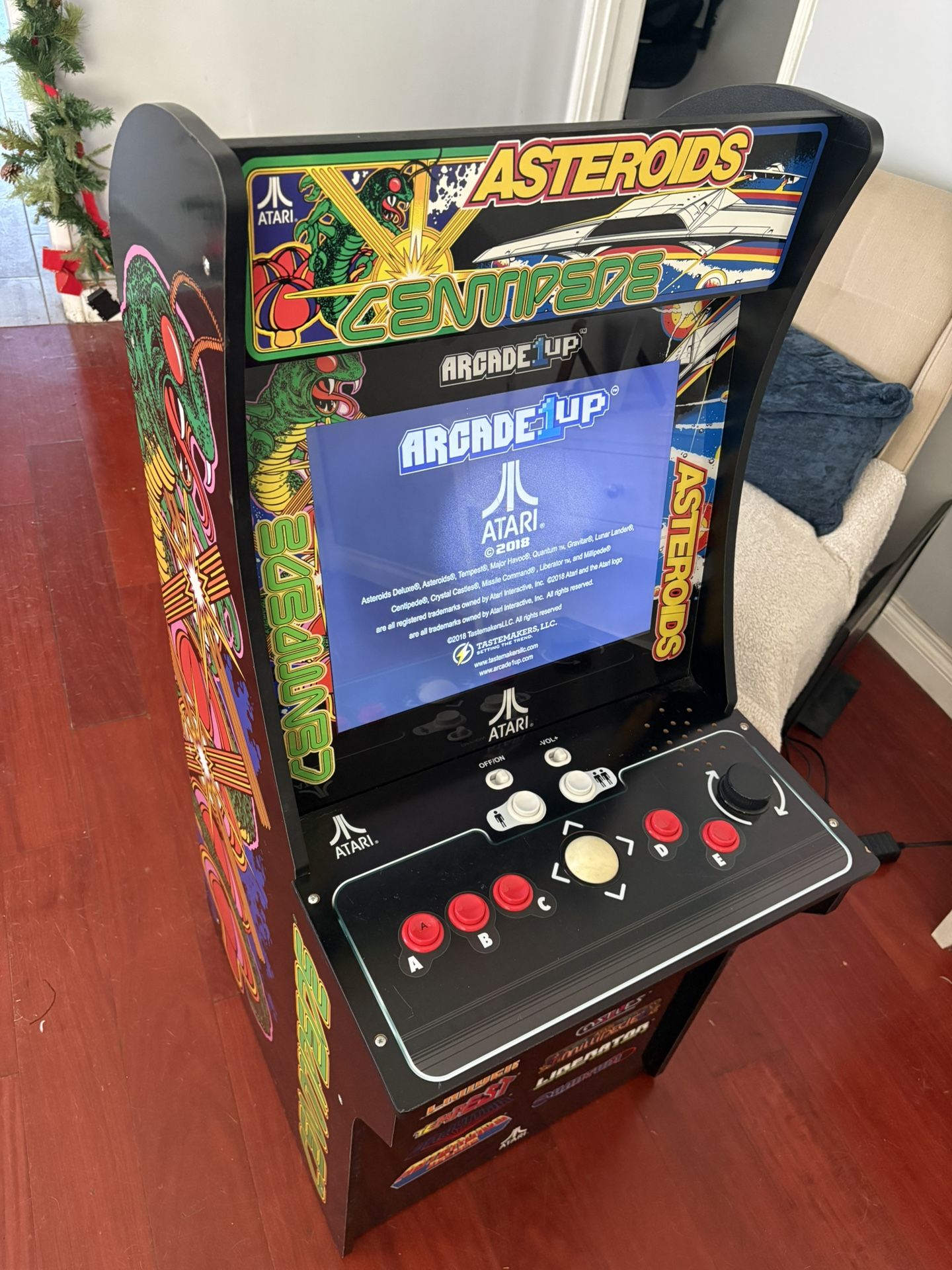 Mini arcade ( not full size) with 12 games included. Works perfect! Only thing it has is a small crack in the middle of the screen as seen in the last picture.