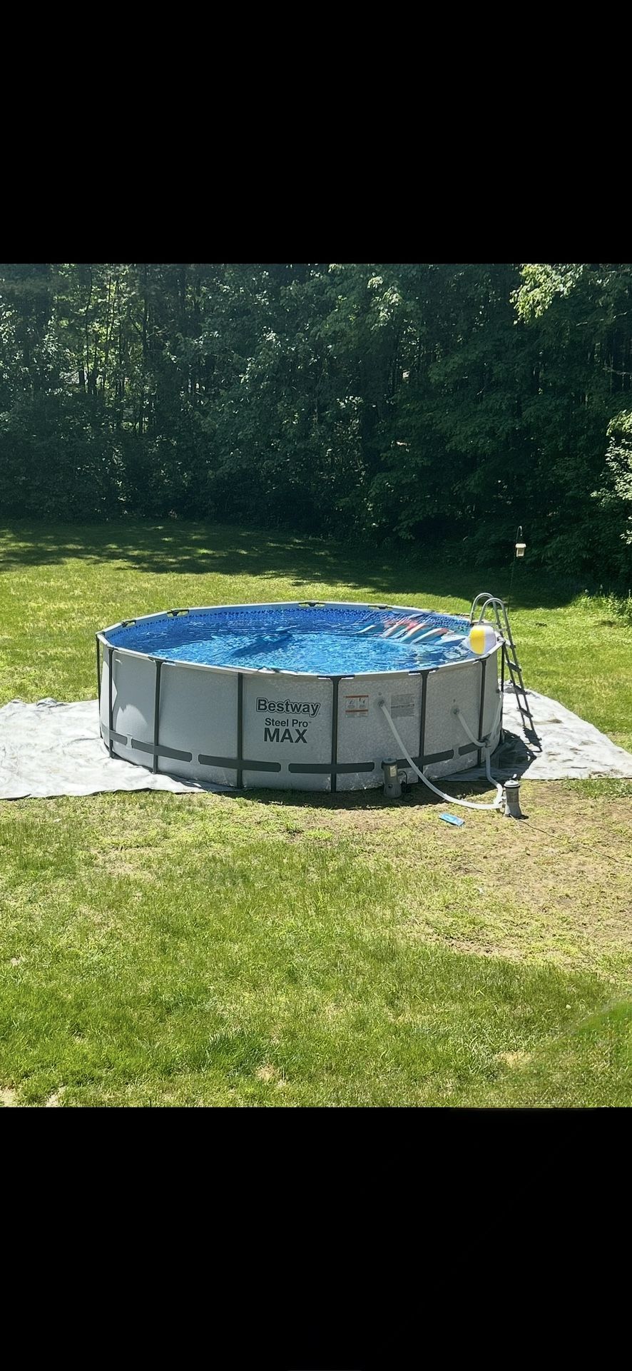 15x15 48in deep. The pool was put up for 2 summers in a row but barely used. It has all the pieces and i had also bought a sand filter for it as well. Bought for $450 and will let go for 200. Serious inquiries only!