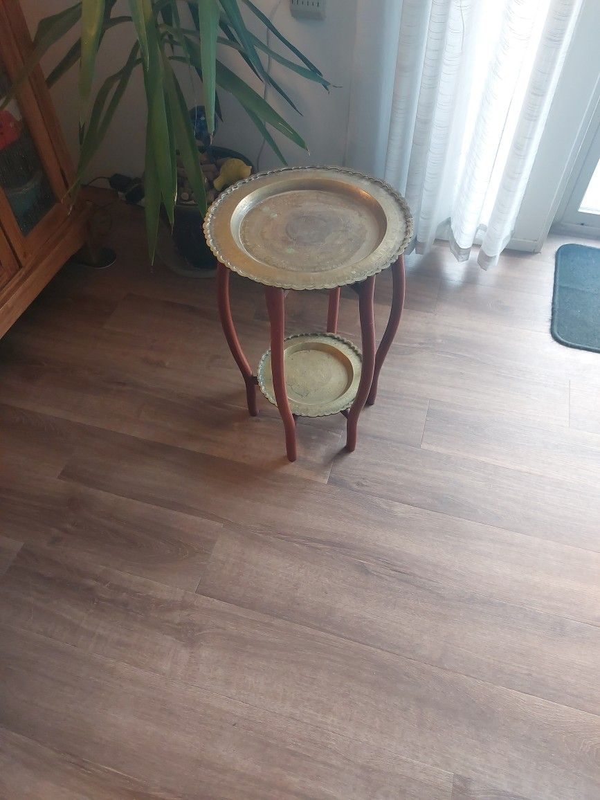 Brass and wood collapsible table or plant stand.