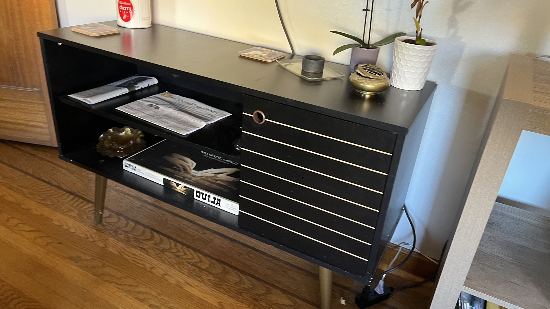 IKEA entertainment center -14.5 depth -42.5 width -26 height Cabinet shelf —13.5 width —14.5 depth Open shelves -26.5 width -7.25 height