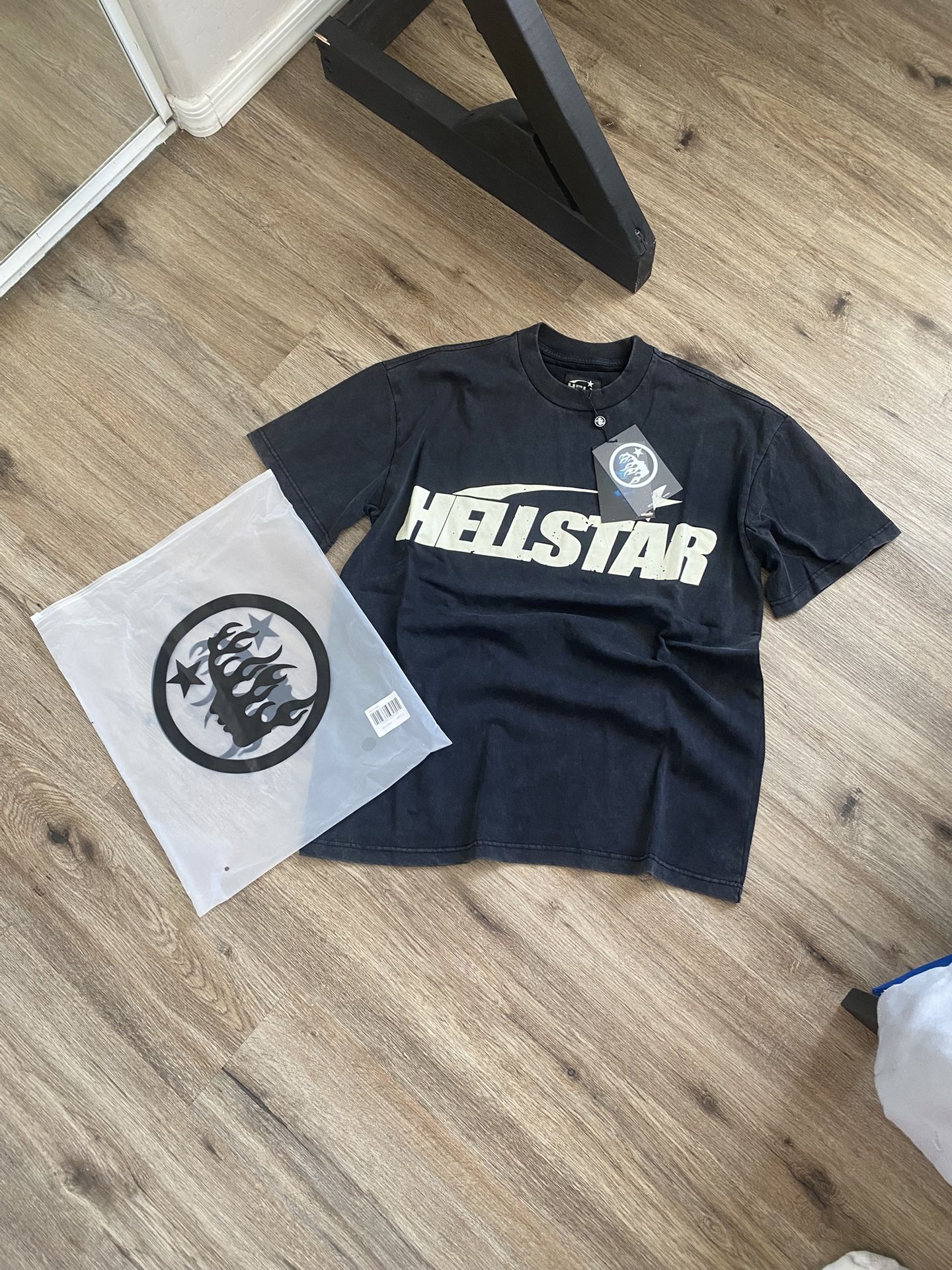 New black HellStar T-shirt with white/cream Logo Size Medium & Large!! Oversized, Sleeves Elbow length,