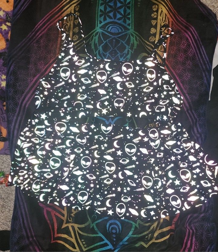 reflective rainbow rave outfit aliens space