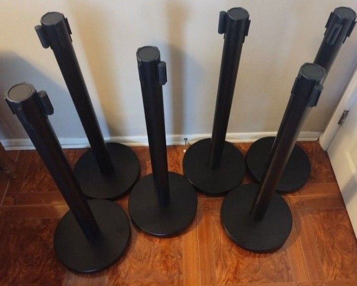 NEW-VEVOR Crowd Control Stanchion Set, Stanchion Set with 6.6 ft/2 m Black Retractable Belt, Black Crowd Control Barrier w/Concrete and Solid Metal Base - Easy Connect Assembly (6)...NEW