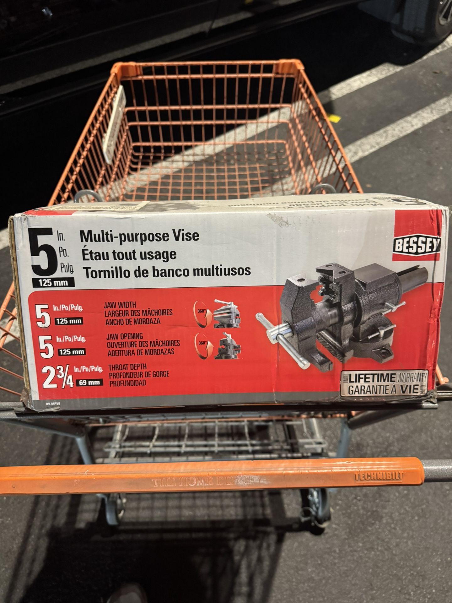 The BESSEY 5 in. heavy-duty cast iron multi-purpose vise features standard pipe and hardened steel serrated jaws. The base and the head rotate 360° large built-in anvil. Swivel base securely mounts to work bench with three mounting holes and has two lockdowns.