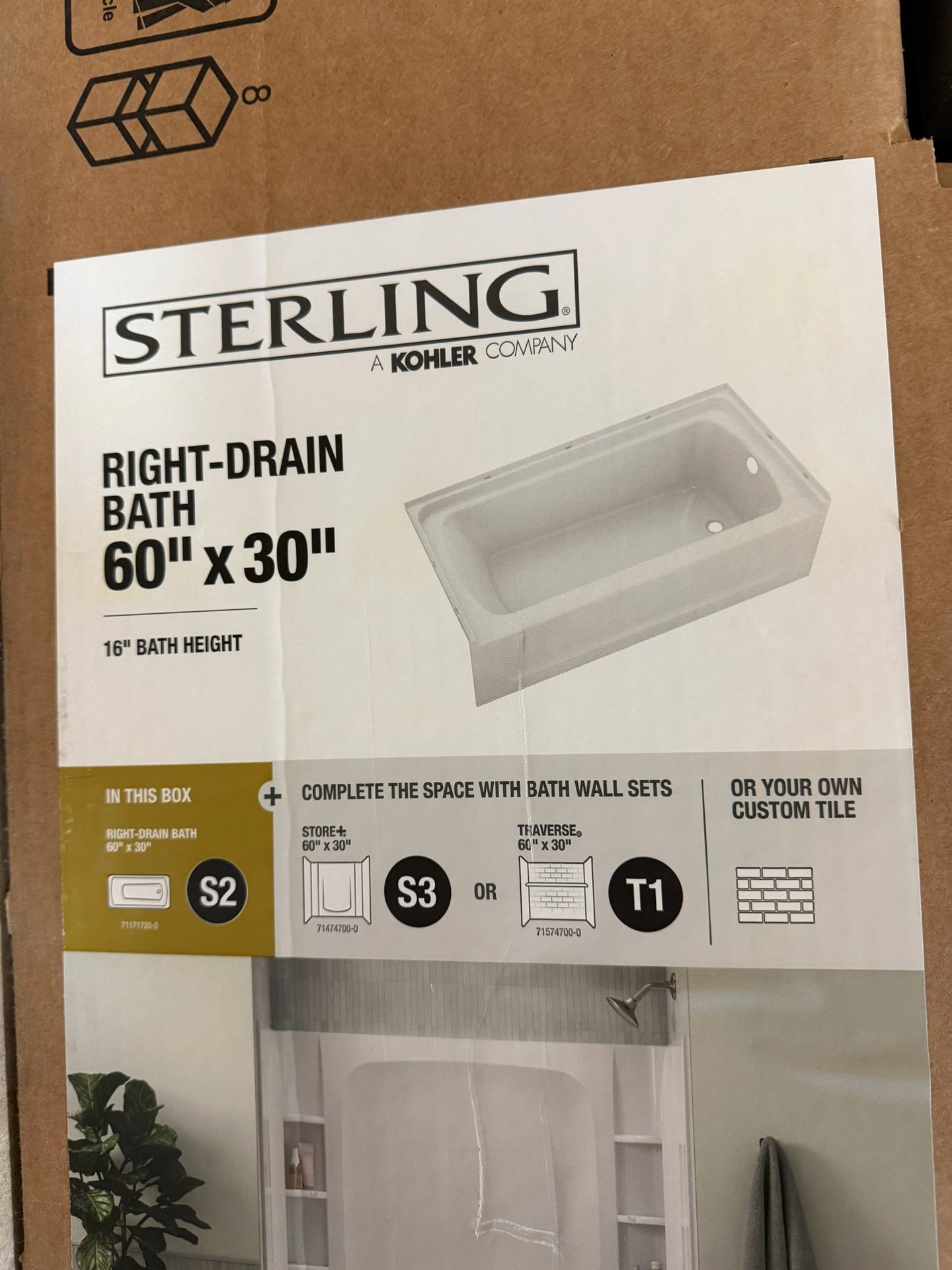 Sterling by Kholer right drain acrylic bathtub. I bought this to remodel my bathroom, but ended up going with another tub. This is brand new from Home Depot paid full price almost $500 with tax. Asking for $325. No cracks or dings. You can check it out in person before purchase. Thanks!