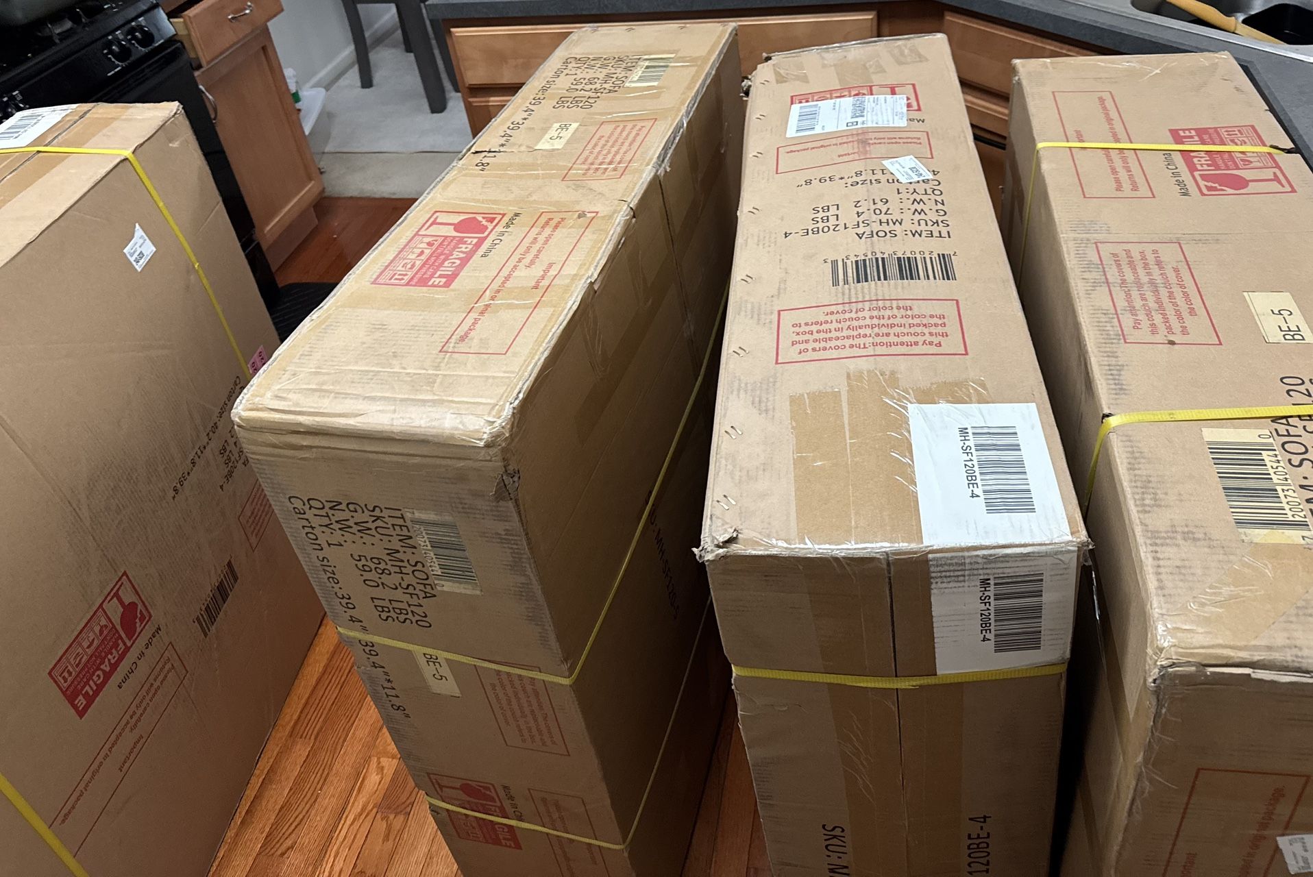 Hasn’t been opened yet. Cost too much to return 162 inch U shaped 6 piece - 4 seats and 2 ottomans Payed almost $6k Seat Depth 29.53 inches Seat Height 19.29 Inches Seating Capacity 6 Product Dimensions 69.69"D x 162.98"W x 36.6"H
