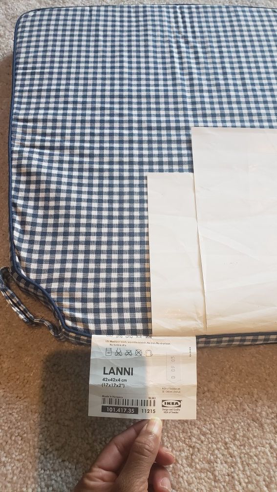 Blue and white IKEA seat cushions. 17 x 17 x 2. Six (8) cushions available. $3 each. Or all eight for $20.