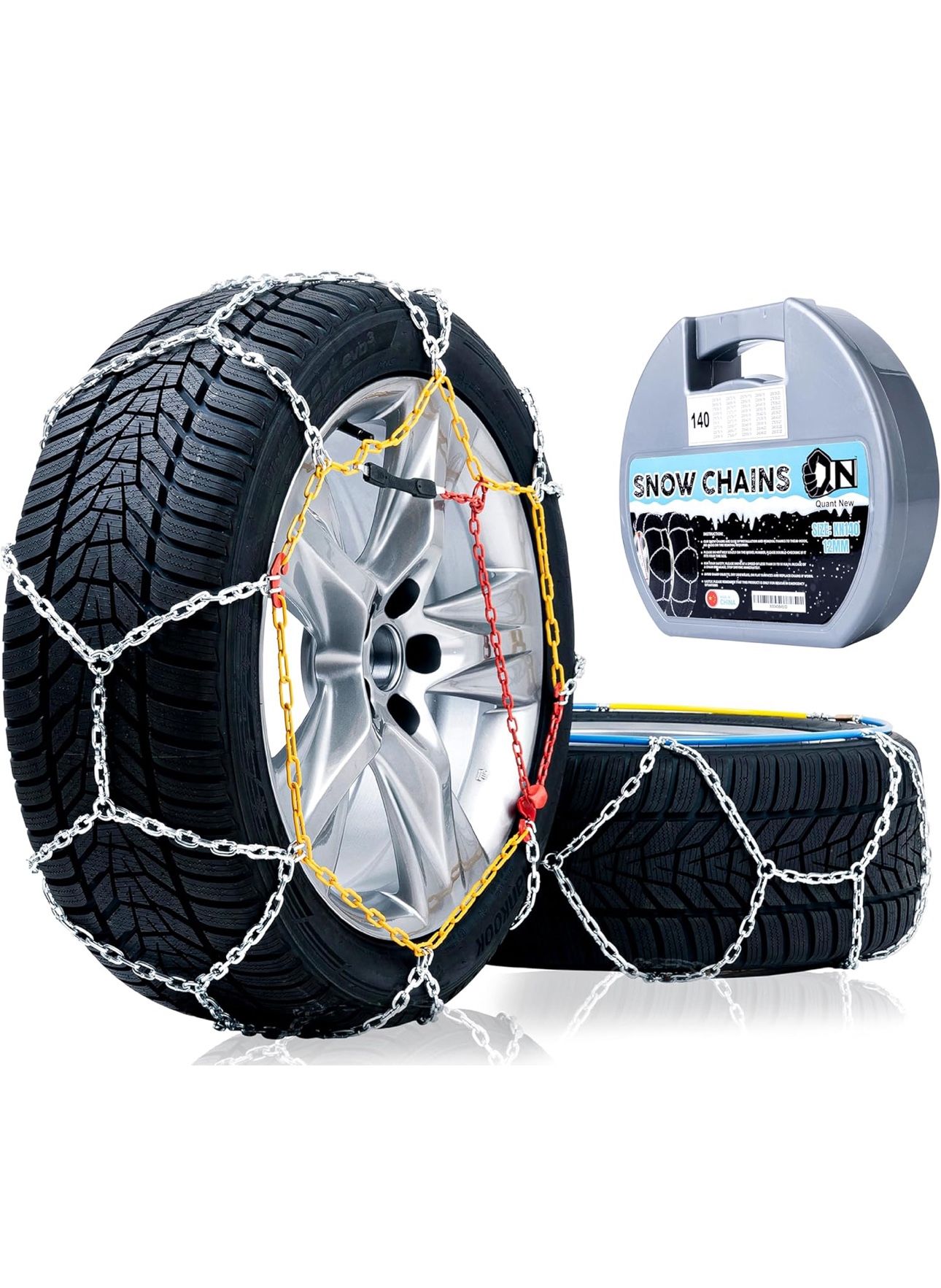 2 PCS Snow Chains for Car, SUV, Pickup and Truck, Compatible with Tire Width 205 215 225 235 245 255 265 275 285 MM (KN130)
