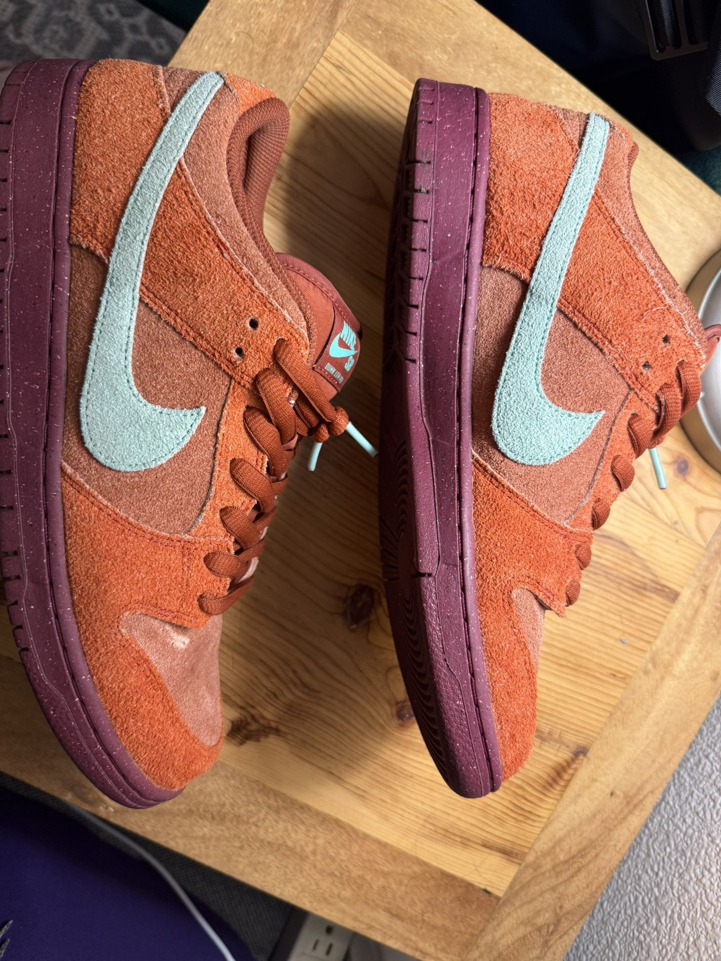 Mystic Red/Emerald Rise Sz. 10.5 I have worn this pair 20 times or so. They are still in very good condition. No stains, have never washed them or have they seen rain. The soles are dirty. Some stars still remain on soles. Purchased from StockX still have receipt and StockX verification coin in box. Sale comes with original box and extra laces.